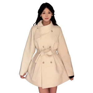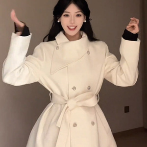 韓国の冬娘の着用白いウールのコート女性のための秋と冬の 2025 新しいスタイルの小さな厚いコート