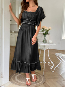 Diyun クロスボーダーヨーロッパとアメリカのレジャー休暇半袖シンプルなロングスカートドレス婦人服 2025 夏アマゾン独立ステーション