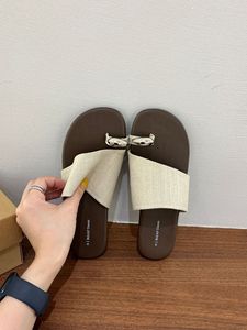 ファッショナブルなメタルバックルカバートゥフラットスリッパ女性用 2025 夏の新しい多用途アウターウェアサンダル
