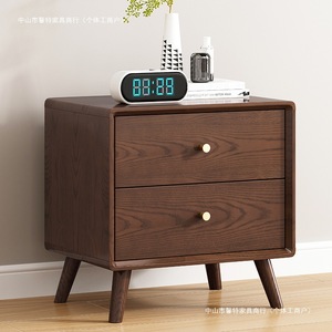 白蜡木实木床头柜侘寂风家用卧室床边简约储物柜现代收纳小柜子