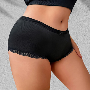 クロスボーダー対外貿易プラスサイズ下着女性ミッドウエストファットMM 1-4XLヨーロッパとアメリカのプラスサイズボクサーブリーフ快適なリボン
