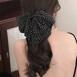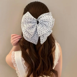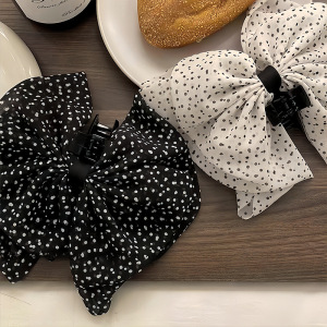 法式复古波点蝴蝶结抓夹时尚鲨鱼夹半扎发夹气质百搭发饰韩系头饰