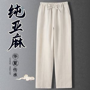 リネンパンツメンズサマーカジュアルパンツ薄い中国風チャイナパンツメンズストレートパンツレトロスタイル綿とリネンのズボン