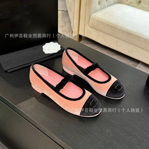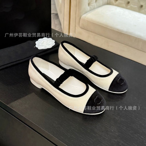 25 新しいスタイルの小さな香りのラウンドトゥカラーブロックメリージェーンシューズ女性のフェアリースタイルワンラインバックル浅い口バレエフラットシューズ