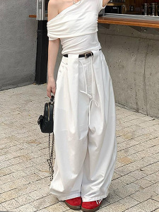 美式高腰阔腿休闲裤女夏秋韩系设计宽松显瘦垂感慵懒百搭长款裤子