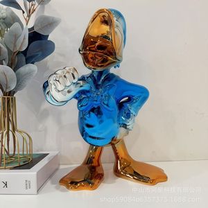 人気のライト高級ドナルドダック装飾品漫画人形リビングルーム装飾電気メッキ彫刻クリエイティブクラフト新築祝いギフトトレンディなおもちゃ
