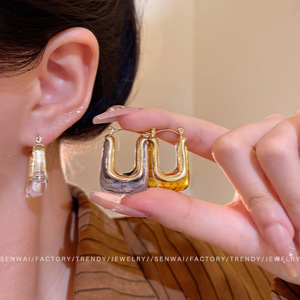 ヨーロッパとアメリカのファッショナブルなパーソナライズされた女性用U字型イヤリング、ハイエンド、多用途、コールドスタイルイヤリング、トレンディな気質、インターネットセレブイヤリング