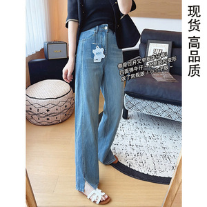 スリムストレートゴブレットパンツ!女性のためのスリムサイドスリットマイクロフレアパンツ夏四面弾性アセテート薄いストレートジーンズ