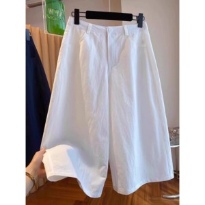 韓国版の女性用七分丈ワイドレッグパンツ、夏用、薄手、新しいスタイル、ルーズ、カジュアル、白、見栄えの良い女性用ストレートパンツ A4457