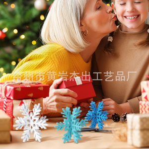 クロスボーダー木製クリスマススノーフレークパーティーデスクトップ装飾 3D スノーフレークテーブルマーク装飾品クリスマス木製工芸品
