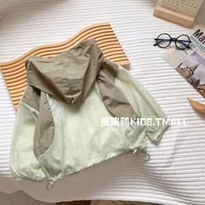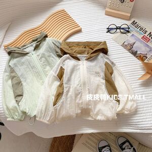 UPF40+ 子供用日焼け防止ジャケット夏の男の子ベビー男の子幼児薄いアウターフード付きジッパージャケット