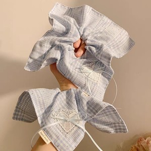 蓝色时尚百搭格子蕾丝蝴蝶结方巾大肠发圈