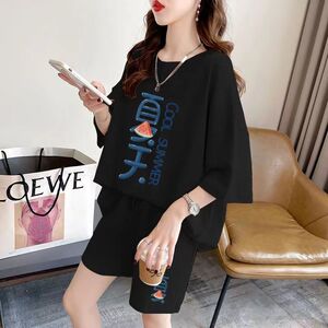 爆款大码女装套装女夏季2025新款宽松欧货棉休闲短袖短裤运动服
