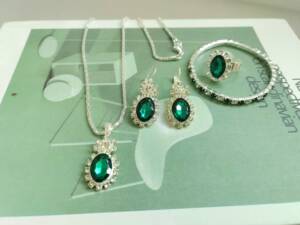 ヨーロッパとアメリカの光沢のあるダイヤモンドがちりばめられた新しいウォータードロップエメラルドネックレス、イヤリング、ブレスレット、リングの4点セット、女性用