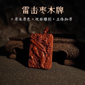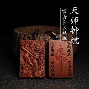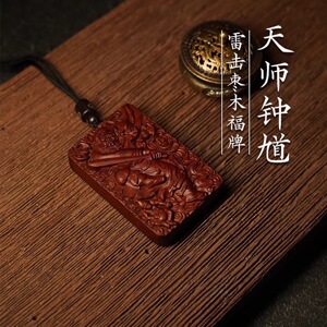 民族风天然雷击枣木牌天师钟馗吊坠牌降魔吊坠挂件文玩项链车挂