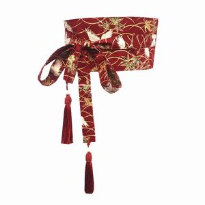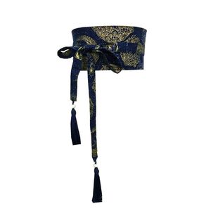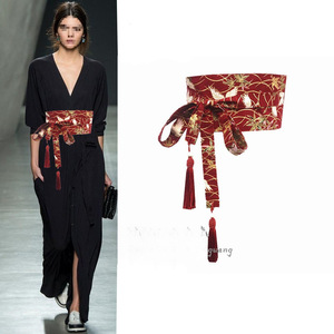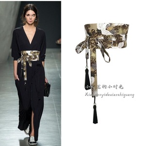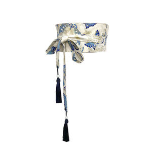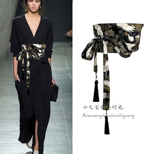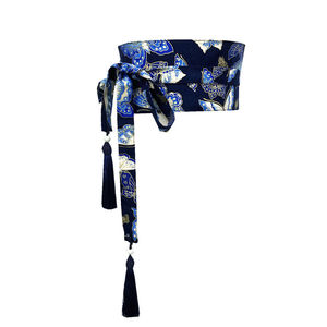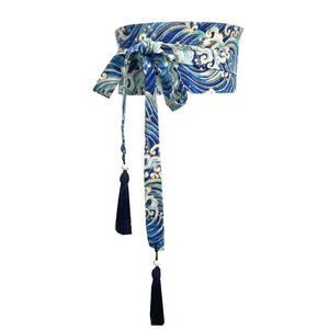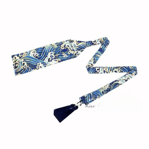 宽汉服流苏和国风风显瘦蓝色腰封腰带连衣裙绑带印花棉麻原创海浪