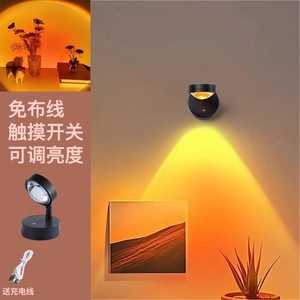 配線不要の夕焼け雰囲気ライト、ワイヤレスリモコン充電式スポットライト、超長バッテリー寿命、パンチフリー装飾絵画ウォールランプ
