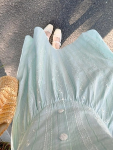 2025 夏の新しい人気の甘くて優しいスタイルの美しいユニークなブルーのドレスフェミニンなウエスト休暇ドレス