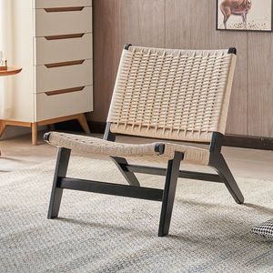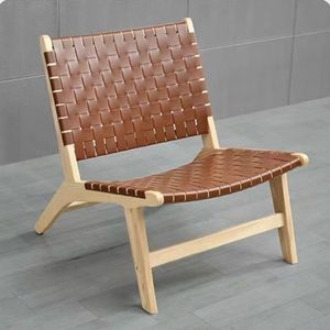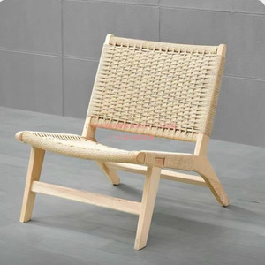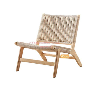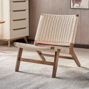 马鞍北欧实木沙发椅复古单人阳台民宿休闲中古日式绳编懒人椅子
