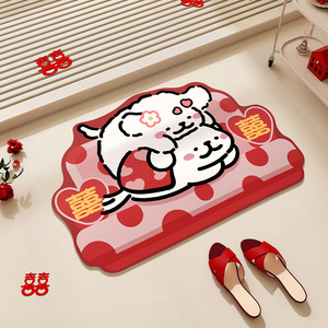 新婚装饰浴室地垫卡通吸水速干防滑脚垫喜庆卫生间进门硅藻泥地毯