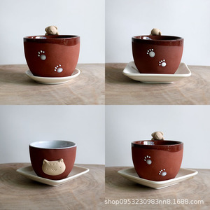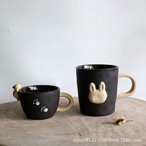 陶瓷水杯茶杯复古可爱杯子手握小号陶瓷咖啡杯碟套装陶瓷杯