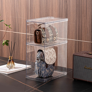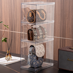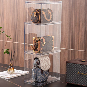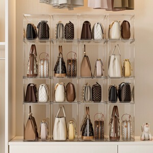 透明バッグ収納ボックスホームワードローブオーガナイザー収納ラックプラス多層積み重ね可能な折りたたみ収納ディスプレイキャビネット