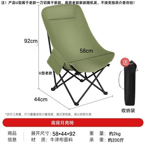 月亮椅户外高背椅子露营折叠凳休闲钓鱼椅子跨境沙滩椅露营装备