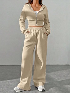 2025 ヨーロッパとアメリカンスタイルの女性の新しいカジュアルファッションフード付き長袖ジッパーカーディガンスウェットシャツスポーツ 2 点セット