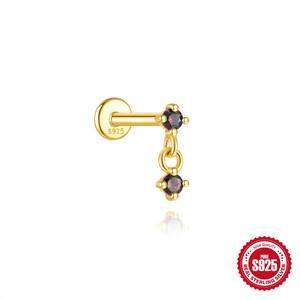 S925纯银超闪亮彩虹石平头螺纹穿刺耳骨钉欧美法式风高级感耳饰品