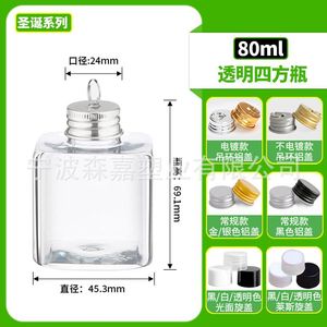 80ml角ボトル、シルバー普通アルミキャップ付き