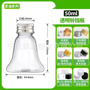 50ml クリスマスツリーボトル、シルバーリングキャップ + 赤いロープ付き