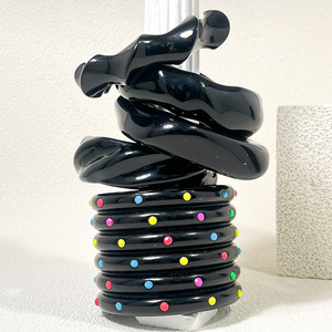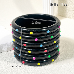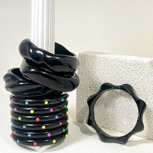 新しいクロスボーダーヨーロッパとアメリカの黒樹脂ブレスレット、カラフルなキャンディドット、重ね着、甘くてクールなファッションブレスレット