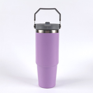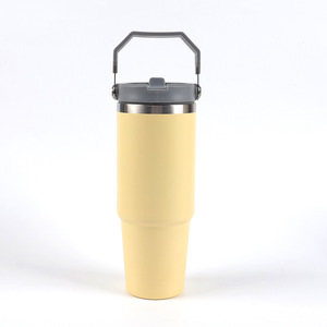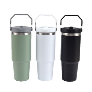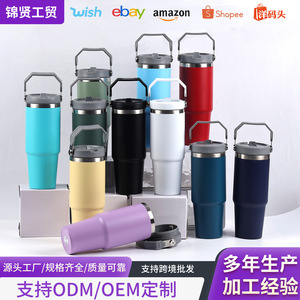 跨境30oz手提吸管杯汽车杯高颜值304不锈钢双层真空冰霸杯批发