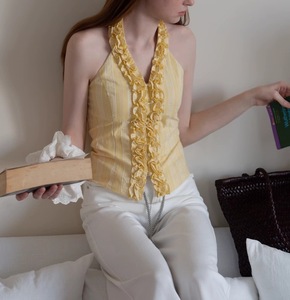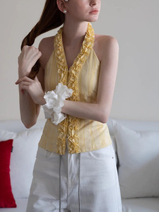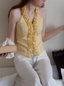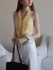 EGGK 黄色の耳付きホルターネックベストサスペンダー夏の新しいスリムフィット休暇スタイルアウタートップ
