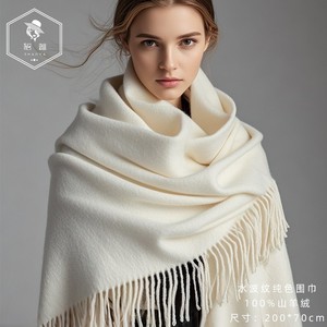 轻奢纯山羊绒披肩女春秋2025新款水波纹盖毯外搭夏季毛毯白色披风
