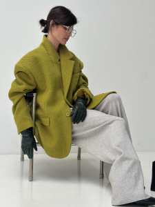 クロスボーダー春と秋のファッションワイドショルダーパッドウールスーツジャケット女性用、ゆったり、快適、暖かい、毎日の通勤に多用途