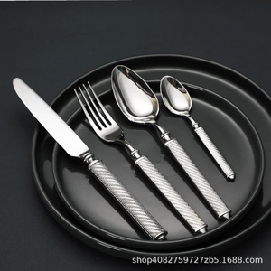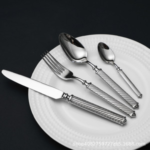 クロスボーダー 304 ステンレス鋼洋食食器鍛造エンボスツイルハンドルハイエンド厚みのあるナイフ、フォーク、スプーンデザートレストラン