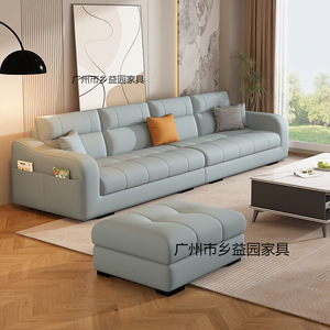 猫抓皮沙发轻奢客厅小户型三四五人位简约现代北欧乳胶浅灰科技布