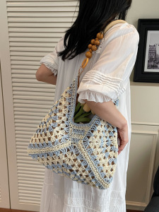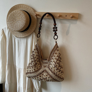 高見え大容量織バッグレディース新作おしゃれショルダーわらバッグカジュアル通勤トートバッグトレンド卸売