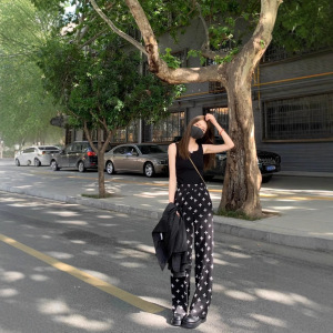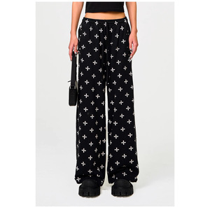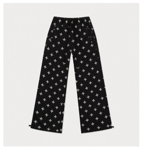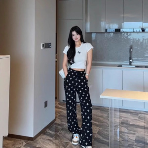 SMFK ブラックガーデン ワイドレッグ スポーツパンツ ドローストリング ルーズ コットン クロスフラワー フルプリント カジュアルパンツ パンツ スウェットパンツ 25春