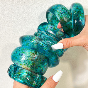 ヨーロッパとアメリカのクロスボーダーブルー水の波紋ブルーミング幾何学的なラウンド樹脂ブレスレットファッションレトロスタイル