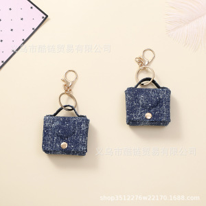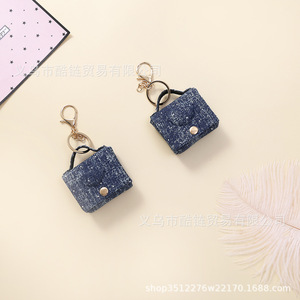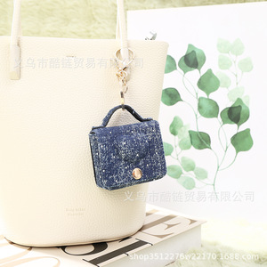 新款流行小香风牛仔耳机包零钱包包挂件汽车钥匙扣手机链装饰挂饰