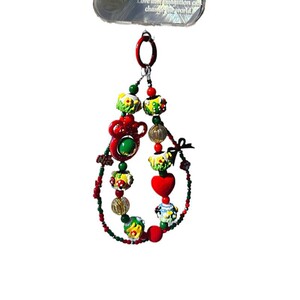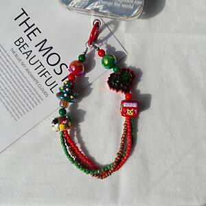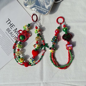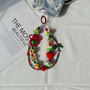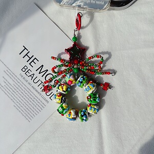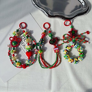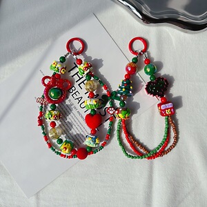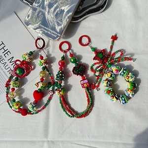 新年クリスマス雪だるま携帯電話チェーンお祝い重油手描きストラップオリジナルリボンビーズ赤と緑のバッグぶら下げ