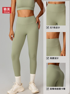 Chimei ランニングヌード速乾性フィットネスパンツ通気性アウタータイトスポーツパンツハイウエストヒップリフティングヨガパンツ女性用 8047
