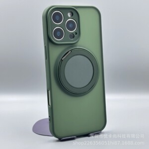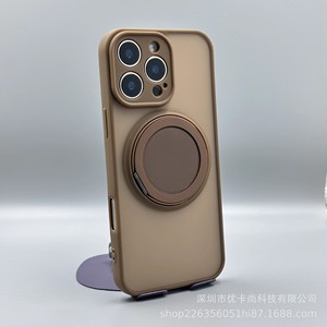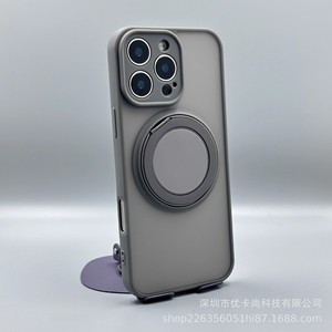 适用iPhone17promax肤感磨砂手机壳旋转磁吸支架苹果16全包保护套