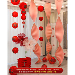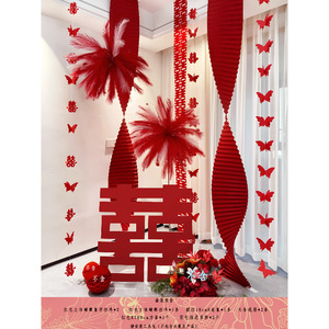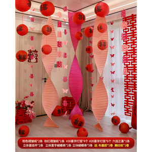 2025婚房氛围感布置结婚拉花装饰全套喜字KT落地摆件女方新房客厅
