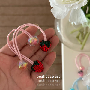 キラキララインストーンイチゴ子供用高弾性ポニーテール甘い巻き毛ロープゴムバンドヘッドバンドヘアバンド
