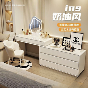 家庭用無垢材スレートドレッシングテーブルモダンシンプルなベッドルームプリンセススタイルフレンチドレッシングテーブルキャビネット一体型ドレッシングテーブル