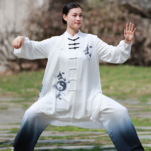 太極拳スーツ女性の新 2025 ハイエンド競技パフォーマンスグラデーション太極拳練習スーツ男性中長服春と秋