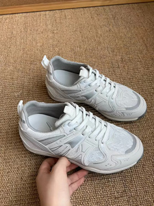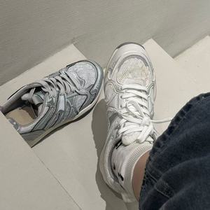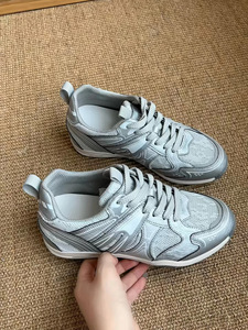 25SS 新しいスタイルの通気性の高い女性用夏用スプライスレースメッシュカジュアルシューズ、小柄な人向けのスポーツシューズ